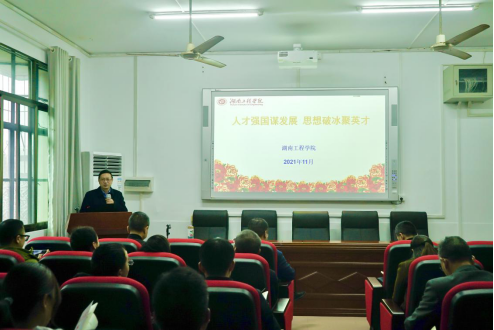 12月14日下午,校党委委员、副校长罗毅平在建筑工程学院会议室为建筑工程学院和国际教育学院全体教工党员作了题为《人才强国谋发展 思想破冰聚英才》的专题党课。