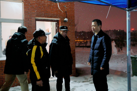 大雪突至,beat365官网后勤保障工作、宿舍管理工作、保卫工作运行如何?学生出行、生活有什么困难?26日下午,党委委员、副校长张小刚带队到各校区教学楼栋、宿舍区察看除冰情况,学生安全情况。“天气寒冷,希望大家克服困难坚守岗位,多注意道路尤其是楼栋前道路的结冰情况,确保同学们出行安全。”“同学们有什么困难,请大家及时帮忙解决。”在各宿舍楼,张小刚与宿管工作人员亲切交谈,再三叮嘱大家将工作落实落细,将师生的安全放到第一位。“同学们今天的出行情况如何?”“提醒大家要注意安全。”在滨江宿舍区大门岗亭,张小刚仔细询问一天来同学们的生活情况,提醒保卫工作人员要注意根据道路情况维护好交通秩序。“同学们在欣赏雪景的时候也要注意安全。”“天气寒冷,要特别注意宿舍的用电安全。”张小刚还走进宿舍,详细了解同学们的学习情况、就业情况、生活情况。