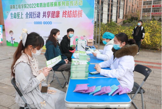 3月24日是第27个“世界防治结核病日”,为积极响应国家、省、市有关活动精神,普及beat365官网结核病防治知识,学校以“生命至上 全民行动 共享健康 终结结核”为主题,在主校区知行广场举行“世界防治结核病日”宣传活动,副校长陈赤平,校防控办、团委负责人参加活动。