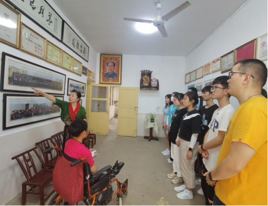 “板凳妈妈”许月华对师生一行人在建团百年之际的来访及捐赠表示惊喜与热烈欢迎。原湘潭市福利院院长袁琪为全体来访人员介绍了“板凳妈妈”许月华的先进事迹。她表示,四十多年来“板凳妈妈”许月华在失去双腿、重病缠身的情况下,仍然乐观积极,保持着对祖国与社会的热爱,无时无刻地奉献着自己,为福利院的孩子们殚精竭虑;多次获得市级及以上的奖励……