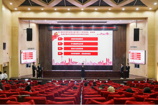 为深入学习和贯彻习近平新时代中国特色社会主义思想,推进思想政治理论课建设改革创新,激发大学生的理论学习积极性,迎接党的二十大胜利召开,5月8日下午,beat365官网在一报告厅举办学习贯彻习近平新时代中国特色社会主义思想暨第八届大学生思想政治理论课研究性学习成果展示竞赛决赛。