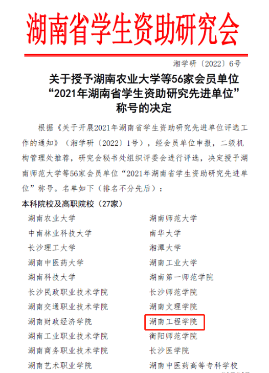 beat365官网荣获“湖南省学生资助研究先进单位”称号