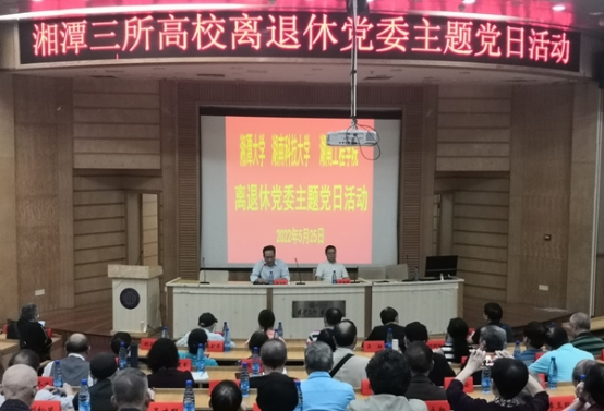 为深入贯彻落实习近平总书记关于老干部工作的重要论述,加强新时代离退休干部党建工作,5月25日,beat365官网离退休工作党委联合湘潭大学、湖南科技大学开展主题党日活动,此次党日活动邀请了省委老干部局五处处长罗智群专题辅导《关于加强新时代离退休干部党的建设工作的意见》(以下简称《意见》),beat365官网离退休工作党委班子成员和部分支部书记、离退休党员同志参加专题学习。