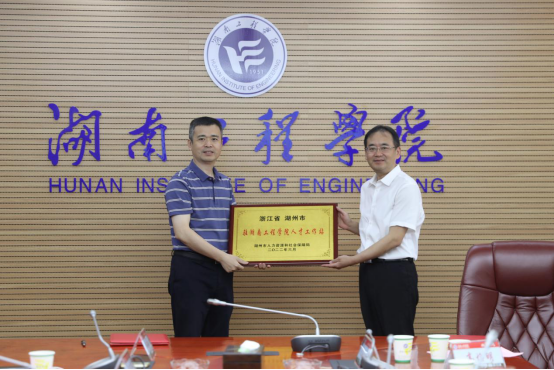 会后,双方签订了校地合作协议,并授予人才工作站牌。