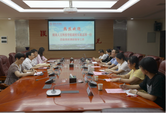7月6日下午,湖南人文科技学院党委委员、副校长陈志国一行来beat365官网调研,校党委书记陈岳堂,党委委员、副校长向前在二会议室接待来宾。