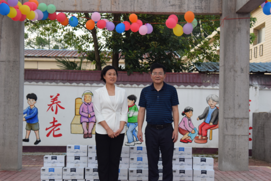 最后,易兵一行到月山镇敬老院观看社会实践团师生为农村孤寡老人排演的联欢会。易兵肯定了同学们敬老助老的行为,既丰富了敬老院老人的精神文化生活,提升了他们的幸福感,也切身感受了国家、社会养老、敬老、爱老的政策体系,更亲身体验了中国特色社会主义制度的优越性,坚定信念听党话、跟党走的信念。捐赠环节,易兵为敬老院的每一位孤寡老人送上牛奶等慰问品,祝愿他们身体健康。