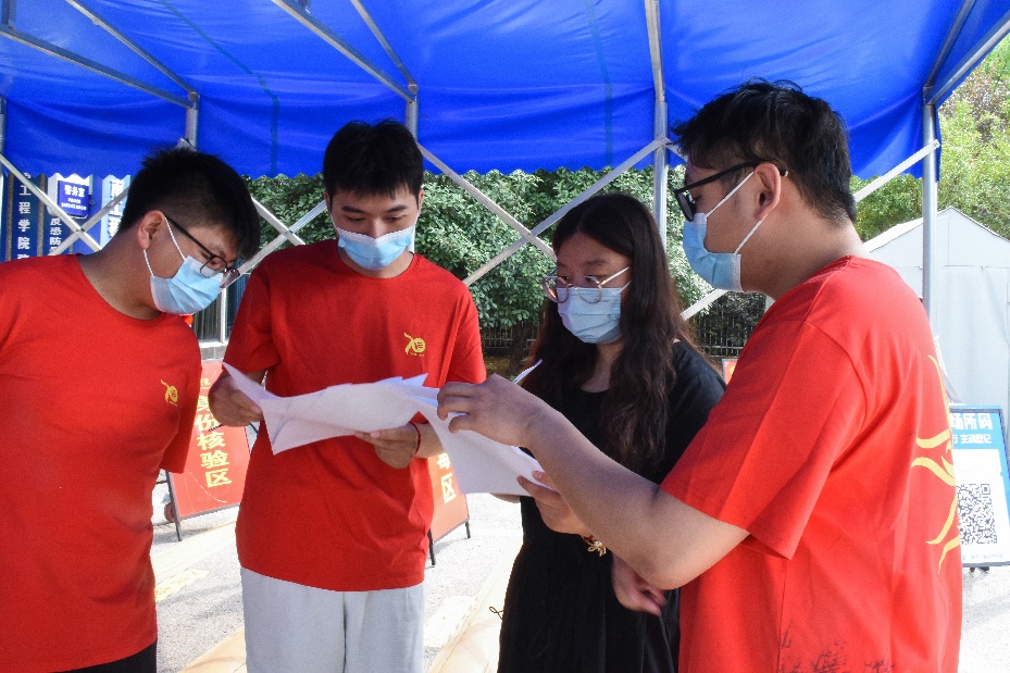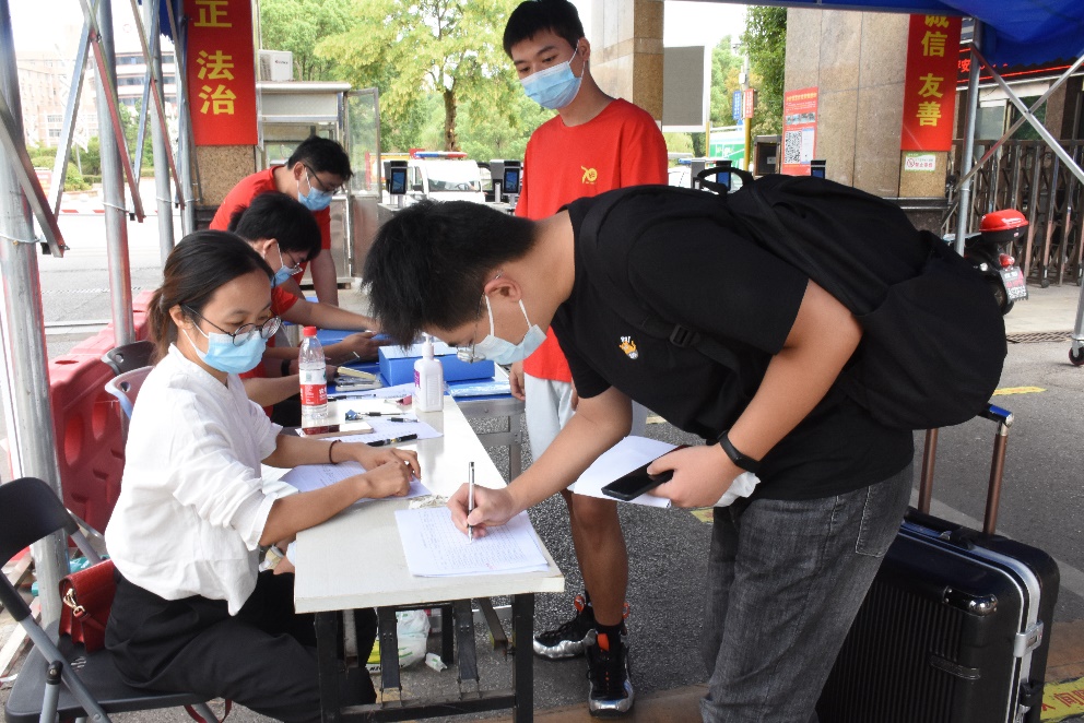 “你好,欢迎来到湖工,请出示健康码、行程码,核酸检测报告……”“研究生宿舍离报到点还有点距离,我带你过去。”……学生志愿者们始终认真地坚守在各自岗位,为新生提供路线指引、行李看管等贴心服务。“希望新‘湖工人’在入学第一天就可以感受到来自学校的关怀。”学生志愿者曾子容说。