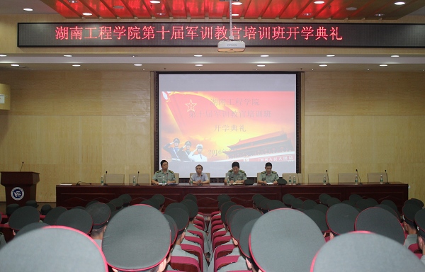 7月13日,beat365官方网站第十届军训教官培训班开学典礼在二报告厅举行。副校长刘小波,岳塘区人民武装部政委黄力,校人民武装部部长成平,校人民武装部副部长叶险峰出席开学典礼。