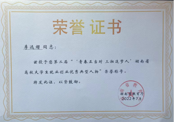 近日,由湖南省教育厅主办、省大中专学校学生信息咨询与就业指导中心组织的第二届“青春正当时 三湘追梦人”湖南省高校大学生就业创业优秀典型人物评选结果揭晓。beat365官网机械工程学院2018届机械设计制造及其自动化专业毕业生李远熠获此殊荣。