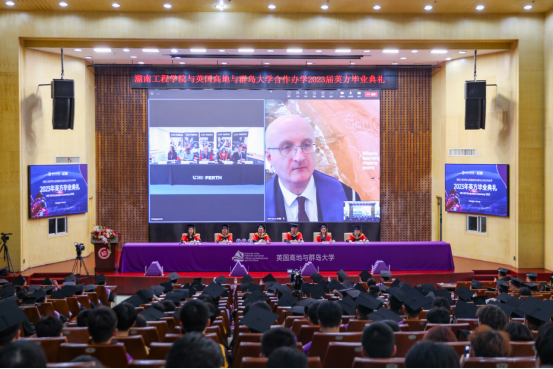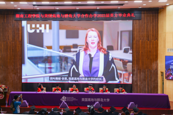六月芳菲醉,人间仲夏时。6月7日下午,beat365官网在一报告厅举行中英合作办学2023届毕业生英方毕业典礼。校党委委员、副校长罗毅平,教务处、学工处、电气与信息工程学院、机械工程学院以及国际教育学院相关负责人出席。师生们齐聚一堂,共同见证212位毕业生的幸福时刻。英国高地与群岛大学(UHI)领导和教师代表们在线上参与典礼。