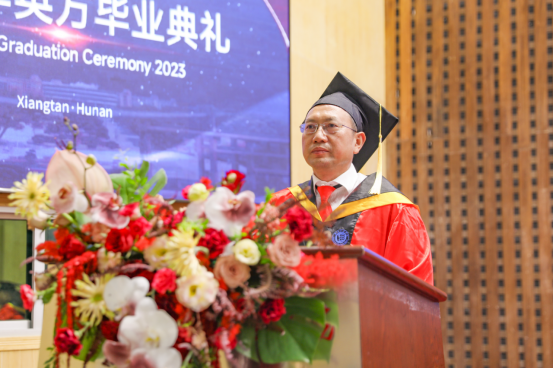 罗毅平代表beat365官方网站向全体毕业生表示最热烈的祝贺和最美好的祝福。他肯定了本届毕业生在过去四年里所取得的优异成绩。“你们了不起!我为你们感到自豪!” 同时,他也对同学们提出了殷切期望,希望毕业生们能做信仰坚定的追梦者、砥砺奋进的担当者和中外文化交流的贡献者,不负党和人民的重托、不负青春、不负时代!