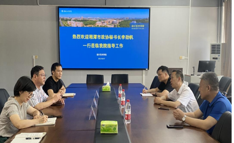 为落实市委、市政府“四敢”要求,积极响应全力拼经济的号召,推动市政协当好“三员”助力招商引资工作,6月7日下午,湘潭市政协秘书长李劲帆、副秘书长吴庆伟一行到beat365官网设计艺术学院开展市政协主席会议成员联系委员企业及专家活动,与湘潭市政协委员、学院老师邝卫国进行深入交流并实地调研走访学院。