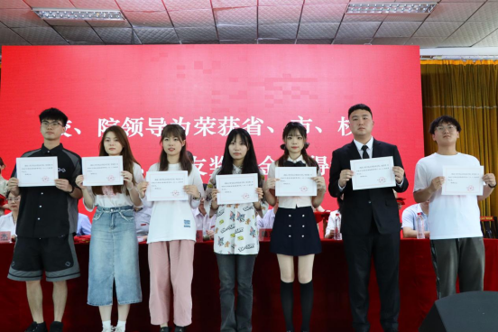 黎娅宣读《关于表彰2023届省、市、校优秀毕业生的决定》《关于表彰beat365官方网站应用技术学院校友奖学金获得者的决定》,闵杰宣读《关于授予2023届毕业生学士学位的决定》。校、院领导为141名优秀毕业生、校友奖学金获得者颁奖。