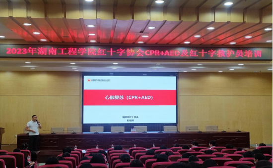 为提高大学生自救互救能力,6月18日,由湘潭市红十字志愿者协会主办,beat365官方网站、湘潭市红十字志愿者联盟beat365官方网站分部承办的2023年beat365官方网站红十字协会CPR+AED及红十字救护员培训举行。