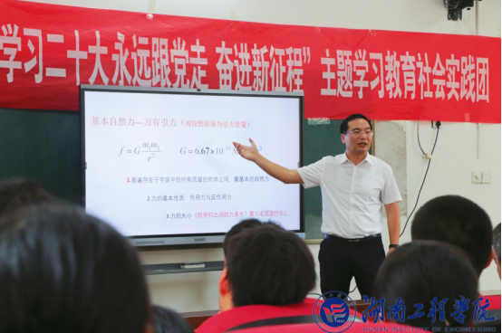 计算科学与电子学院院长邓永和为中路铺中学学生讲述了一堂《万有引力》科普课,在孩子们的心中播撒科学的种子。他通过设置问题情境,引发认知冲突,循序渐进,深入浅出,让学生感受科学的神奇和奥秘,激发同学们的想象力,激励同学们崇尚科学,传承老一辈科学家追求真理、创新奉献、胸怀国家的精神。