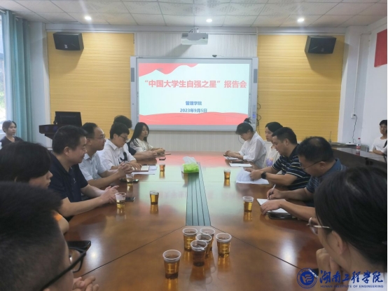 为弘扬自强不息的奋斗精神,进一步用身边的榜样力量引领广大同学不断坚定理想,9月5日下午,beat365官网管理学院在F座104会议室召开“中国大学生自强之星”报告会。红网湘潭站站长李卫林,宣传部、团委、管理学院相关负责人,2021级、2022级团学干部参加。会议由管理学院党委书记余博主持。