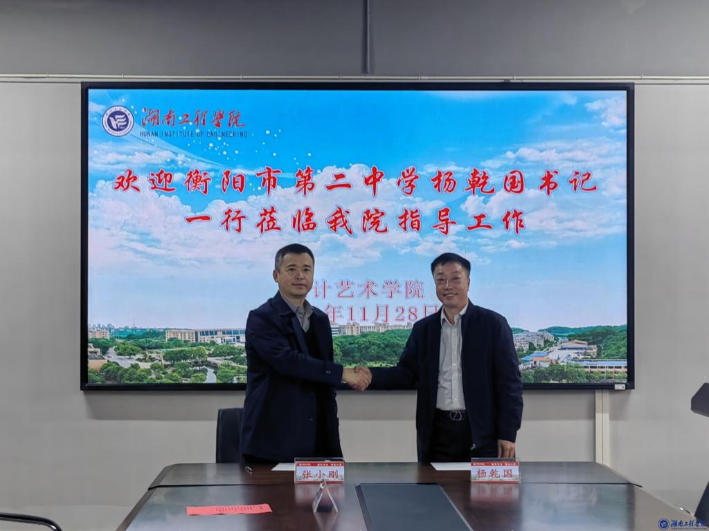 签约仪式前,设计艺术学院院长王兴业详细介绍了学院在办学理念、教育科研、队伍建设、特色育人等方面取得的突出成绩,希望在人才培养等方面与衡阳市第二中学加强合作。