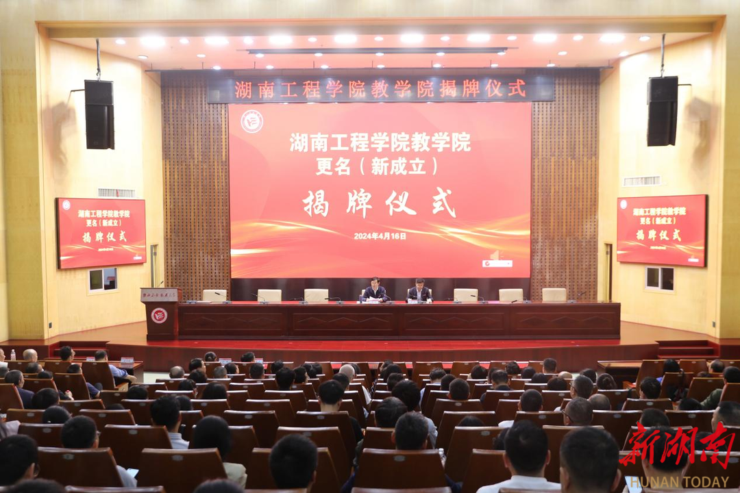 湖南日报·新湖南客户端4月17日讯(通讯员 杨欢)4月16日,beat365官方网站举行教学院更名(新成立)揭牌仪式。校党委书记黄昕,党委副书记、校长易兵出席仪式并揭牌。中层干部、新学院教师代表共同见证学校发展史上这个具有里程碑意义的高光时刻。