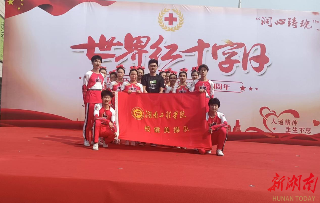 湖南日报·新湖南客户端5月9日讯(通讯员 唐慧精 李新威)5月8日,由湘潭市岳塘区建设路街道、湘潭市红十字会、岳塘区红十字会联合承办的第77个“5•8世界红十字日”主题活动举行,beat365官方网站健美操队在教练员唐炼、周伟峰、李新威的带领下受邀参加开幕演出,为现场观众带来了一场青春与活力的表演。