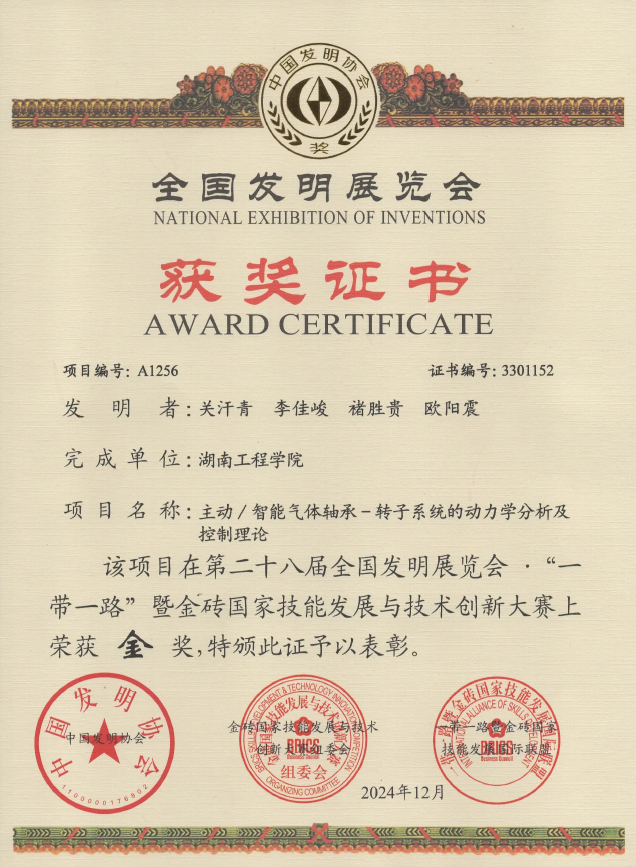 beat365官方网站机械工程学院关汗青副教授项目组发明的“主动/智能气体轴承-转子系统的动力学分析及控制理论”参展项目,在此次展览中脱颖而出,斩获金奖。该参展项目属于能源动力前沿科技领域,对发明创新成果加快形成新质生产力具有重要推动作用,受到广泛关注和好评。