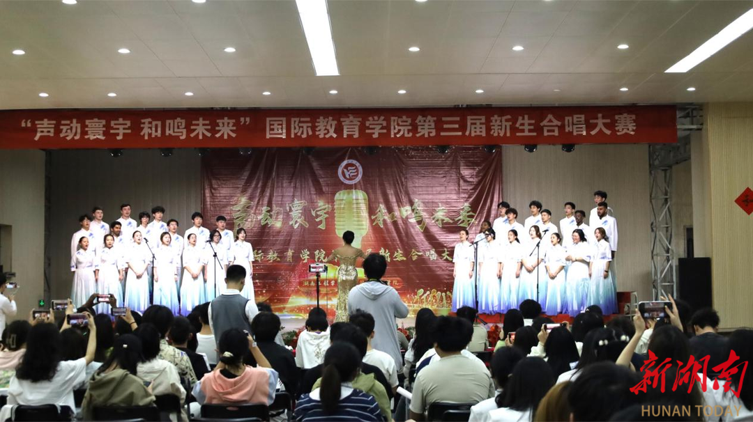 湖南日报·新湖南客户端4月16日讯(通讯员 张轶 张钰锋 唐秋菊)4月13日,beat365官方网站国际教育学院举行第三届新生合唱大赛。本届大赛以校歌与经典歌曲相结合的形式献礼青春,通过艺术展演深化美育内涵、弘扬家国情怀。2024级全体新生及留学生组成的7支合唱团同台竞演,吸引线上线下超千名师生、家长及网友观看。