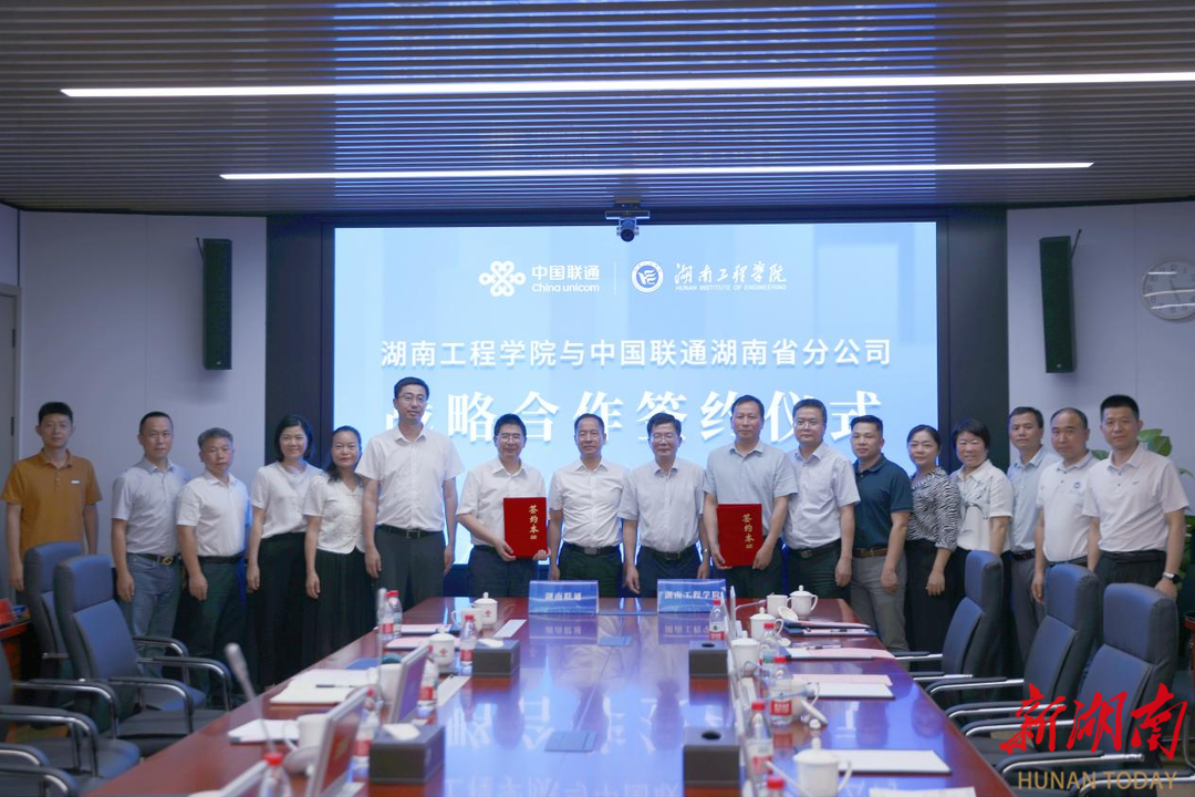 在与会人员共同见证下,双方签署战略合作框架协议,标志着校企合作进入新阶段。未来将通过整合高校智力资源与企业技术优势,双方共同构建产学研用一体化创新生态,为培养高素质应用型人才、推动科技成果转化、促进湖南数字经济高质量发展注入新动能。