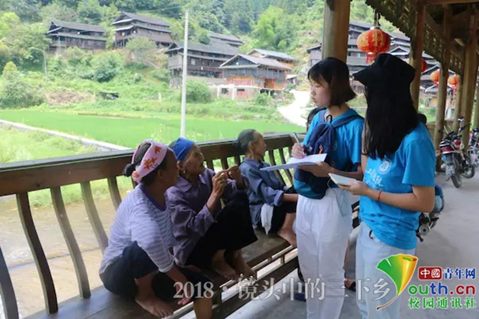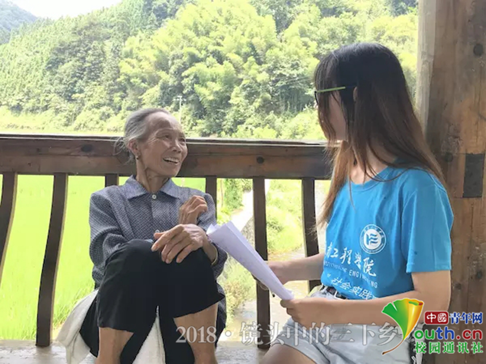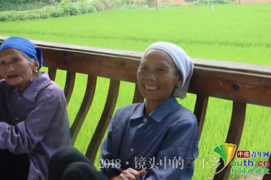 两位老奶奶开心地和志愿者说国家政策变好了,环境也变好了,自从村子开发了旅游业以后,修了这些桥,我们就有了玩的地方。中国青年网通讯员 吴其双 摄