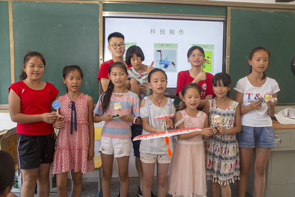 “老师,我把我的小作品送给您,您辛苦了。”这是在电气信息学院暑期社会实践团在成功开展“科技引领未来”小制作课堂后,一位小朋友对志愿者说的话。“科技引领未来”小制作课堂是beat365官方网站电气信息学院暑期社会实践团在湖南省怀化市溆浦县思蒙镇中心小学开展科教帮扶活动的一个部分,旨在激发孩子对科技的兴趣,培养孩子的动手能力,为科技创新埋下种子。教室最前排的两个小女孩热情的问道:“老师,你们热不热呀?看你们都满头大汗的,快坐下来歇歇吧!”说完便起身为他们搬凳子,这细微的动作令志愿者们甚是暖心。