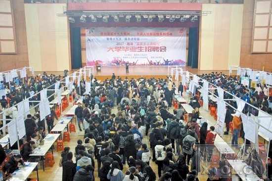 湘潭在线11月20日讯(湘潭日报社全媒体记者 李涛 通讯员 李荀龙) 11月18日,湖南工程学院体育馆内人头攒动,以“聚焦十九大,服务进校园”为主题的2017·湘潭“百家名企高校行”大学毕业生招聘会在这里举行,吸引了万余名在潭高校毕业生前来求职。据主办方统计,现场达成求职意向4200人次,创2012年这项活动开展以来的历史新高。