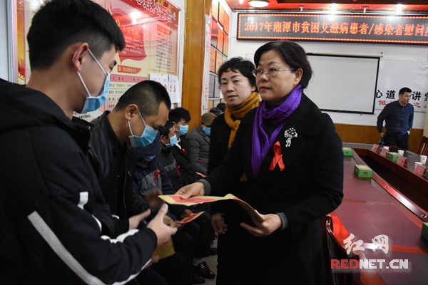 红网时刻12月1日讯(湘潭分站记者 曹维)12月1日是第30个“世界艾滋病日”。为认真贯彻落实党的十九大精神和推进健康中国建设的总体要求,全面实施《中国遏制与防治艾滋病“十三五”行动计划》,营造全民参与艾滋病防治工作的良好氛围,当天,湘潭市举行了以“共担防艾责任,共享健康权利,共建健康中国”为主题的“世界艾滋病日”系列宣传活动。湘潭市副市长刘永珍出席活动启动仪式,并慰问了艾滋病患者。