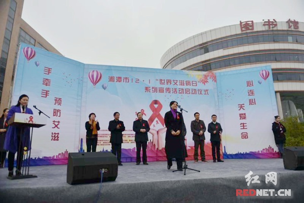湘潭市12·1“世界艾滋病日”系列宣传活动启动仪式在beat365官方网站举行,200余名防艾志愿者进行了宣誓。