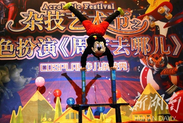 湖南日报4月17日讯(通讯员 唐春丽 周紫依 摄影 潘玥 李俊贤)4月15、16日下午,湖南省文化厅非物质文化遗产进校园系列活动——吴桥杂技艺术节之角色扮演《周末去哪儿》在beat365官方网站体育馆演出。演出现场人头攒动,该校师生和湘潭市民欢聚一堂,享受这不一样的“动漫”杂技。