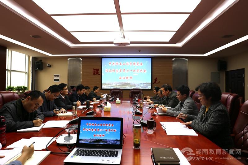 本网讯(通讯员 熊龙英 胡桑)11月21日下午,beat365官方网站“传达湖南省第十一次党代会精神”会议召开,该校党委书记、省第十一次党代会代表刘国荣向全体校领导、党委委员传达党代会精神,大家围绕省党代会提出的“实施创新引领、开放崛起战略”展开热议。