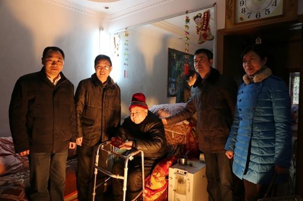 冒着冬日的寒冷,宁立伟一行到程正恁、王桂云、潘红旗等几位离退休老人、困难职工党员家中慰问,代表学校给他们捎去新年祝福,并送上慰问金。所慰问的几位老人都年事已高,身体欠佳,生活基本不能自理,因需长期治疗费用较大导致家庭相对困难。后勤党总支职工潘红旗则因为股骨头坏死刚刚经历手术,目前行动不便。每到一处,慰问组一行关切地询问他们的身体状况和生活情况,仔细了解他们的生活困难。对于身患重病、生活困难的老同志,慰问组鼓励他们调整好心态,保重身体,安度晚年。对于在职职工,慰问组则勉励他们积极治疗,争取早日度过难关。