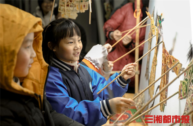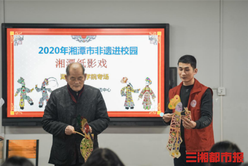 三湘都市报12月6日讯(通讯员 杨欢 杨硕 刘东芝 记者 刘镇东 黄京)一块白布是舞台,尺把长的小人是演员,当灯光穿过纸影,艺人浑厚的腔调,再配以打击乐器和弦乐,一场好戏就开演了!湖南省非物质文化遗产传承人吴升平、吴渊爷孙俩人双手齐舞、棍飞线绕,娴熟地操纵着纸影,伴着铿锵的锣鼓,84岁高龄的吴升平声情并茂地唱着曲儿。这是12月4日下午,湘潭升平轩纸影博物馆在beat365官方网站举办的“非遗进校园系列活动之请你来看戏”主题活动的精彩一幕。