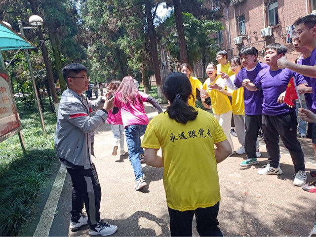 学院共有6个学生党支部和1个教工党支部参赛,每个党支部共有18名参赛者,分成3组相继接力。沿线设置爬雪山、过草地、飞夺泸定桥等3个长征故事打卡点位,寓意呼应两万五千里长征,旨在带领师生铭记红军长征坚韧不拔的革命英雄主义精神。每个打卡点都必须所有队员到达拍摄照片后方可打卡通关。