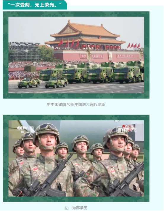 “我永远无法忘怀那一天,在新中国成立70周年国庆阅兵式上,我将自己最完美的军姿奉献给了我的祖国。”