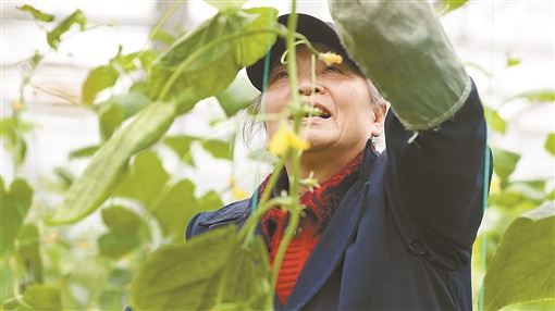 泉湖片区村民在现代化大棚内进行农作物管护。