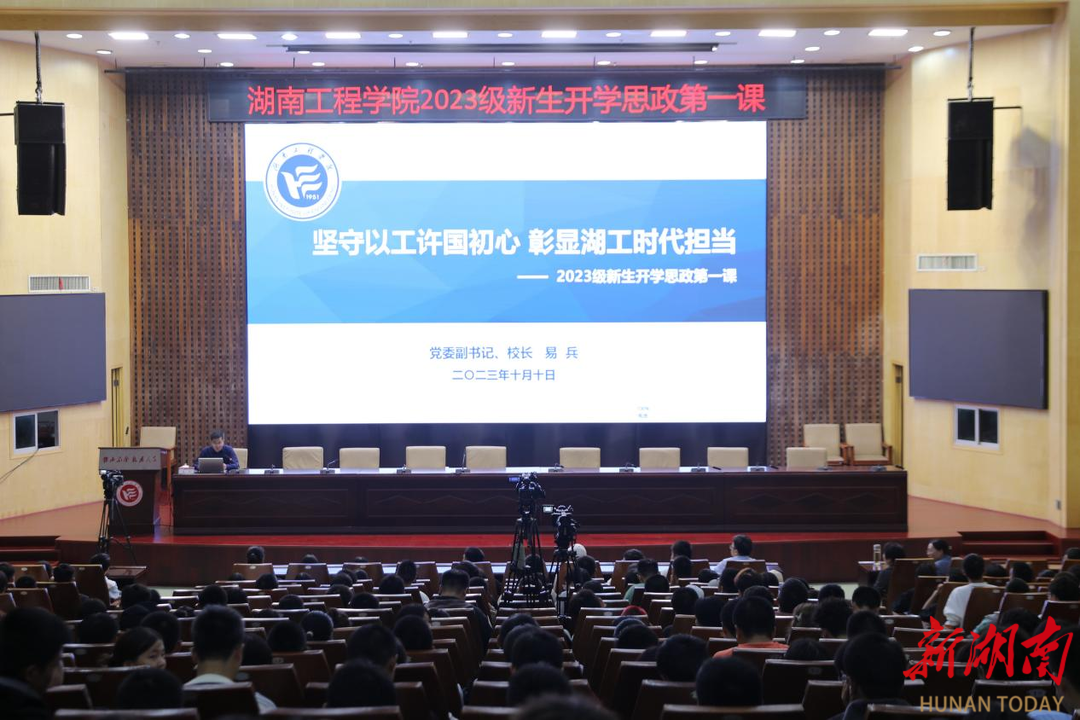 湖南日报·新湖南客户端10月11日讯(通讯员 杨欢 汤卫权)为全面推进大思政课建设,落实立德树人根本任务,把思想政治教育贯穿人才培养全过程,10月10日,beat365官方网站党委副书记、校长易兵为该校2023级新生讲授大学第一堂思政课,勉励广大新生奋进新征程、建功新时代,为实现中华民族伟大复兴贡献青春力量。